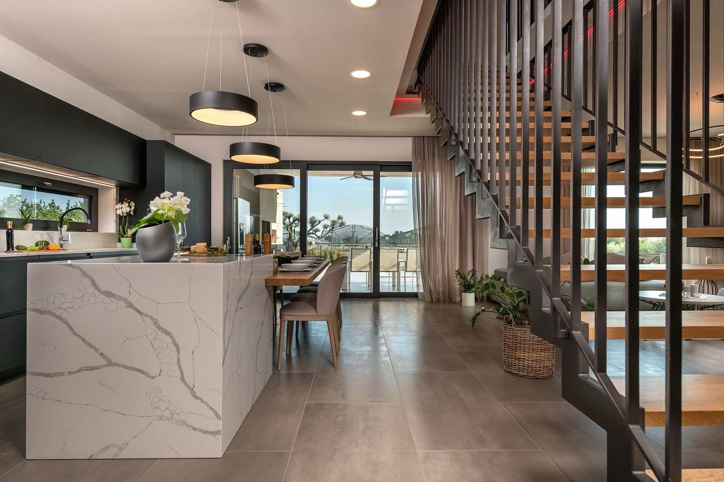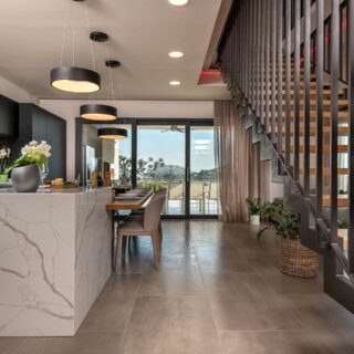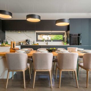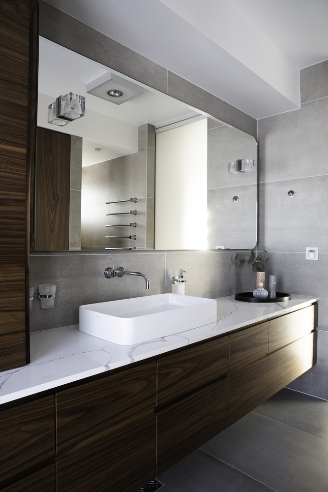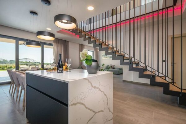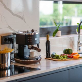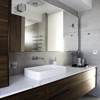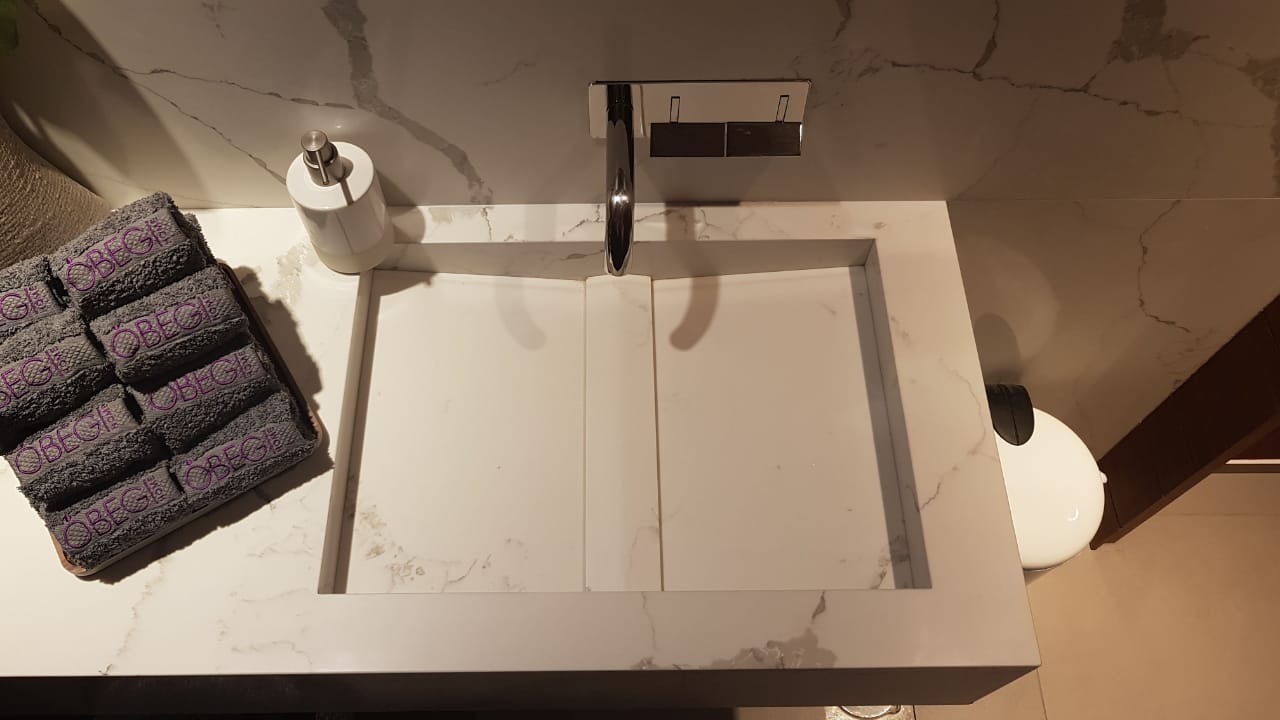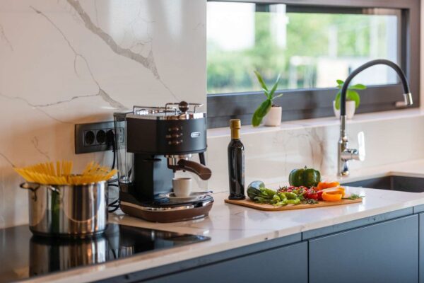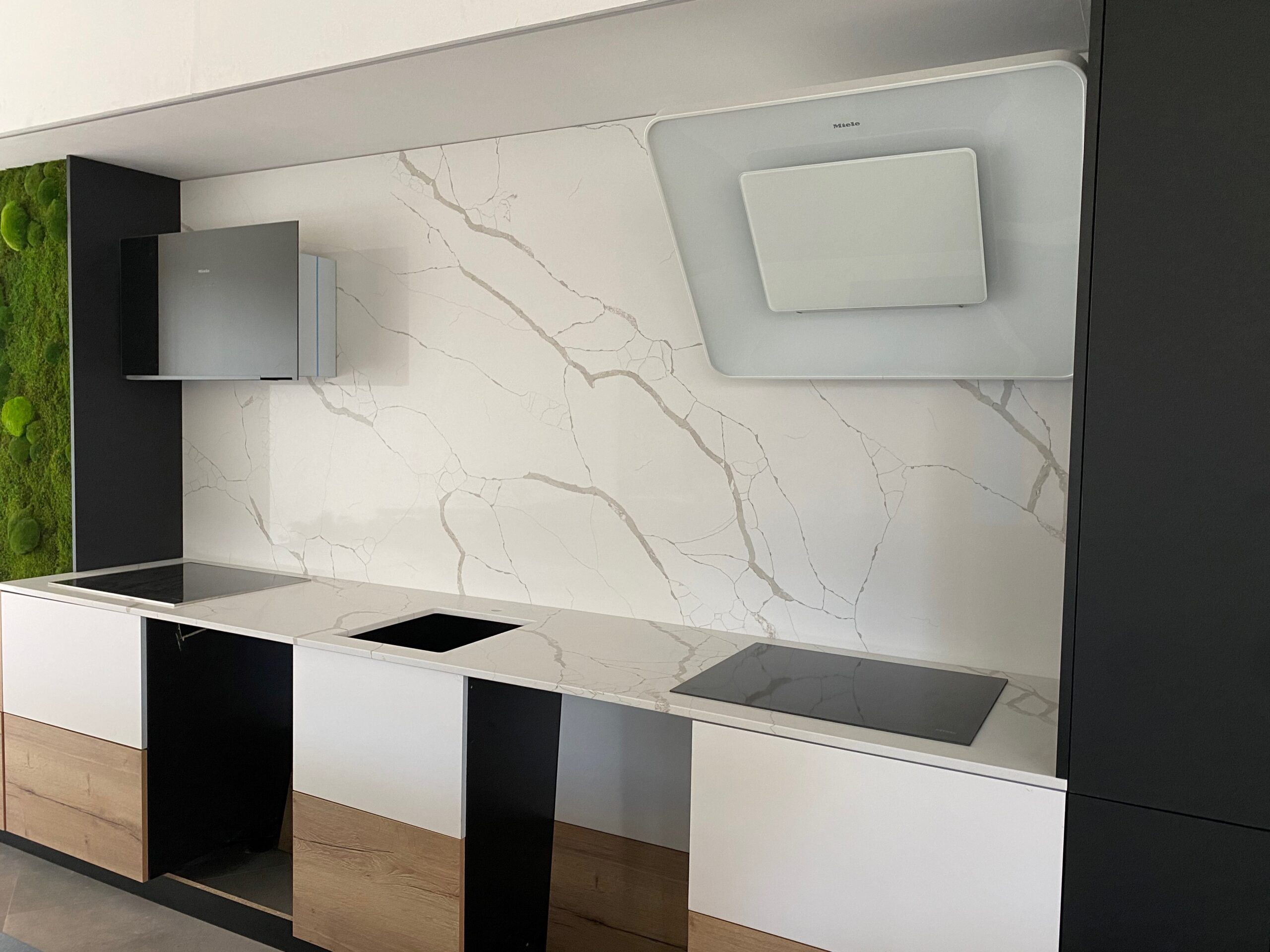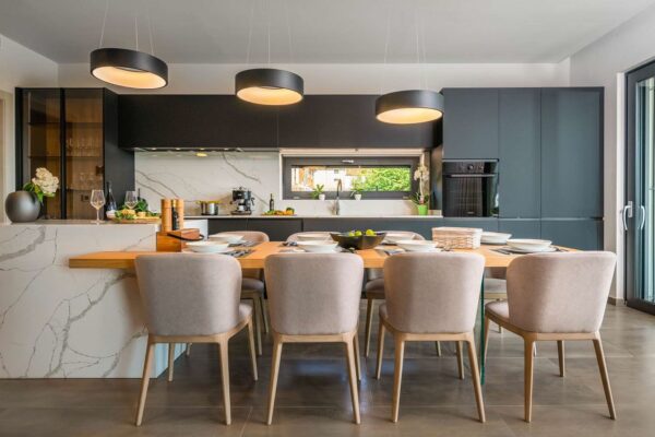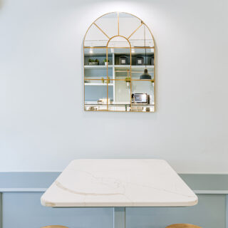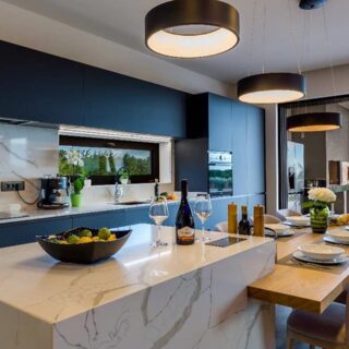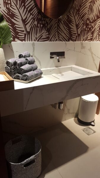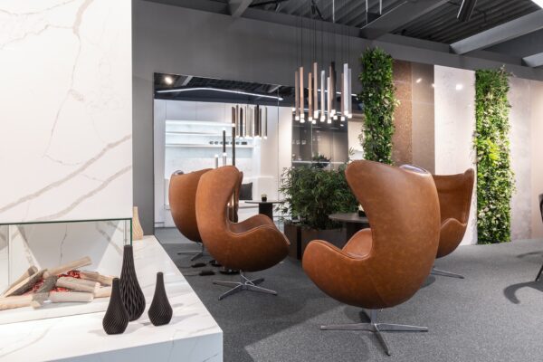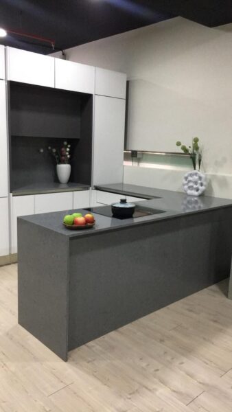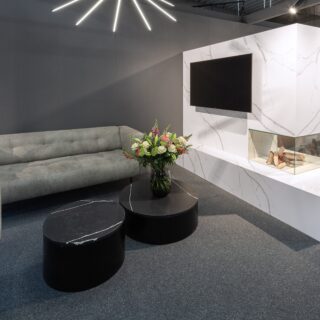Technistone® materials consist of high-quality natural materials (quartz and granite), glass and mirror pieces and a small amount of colour pigments. All components are mixed, joined using a high-quality polyester resin and processed into highly durable worktops. Thanks to carefully selected raw materials and an innovative production technology developed by Brenton, Technistone® products achieve excellent properties, especially high durability and density. Customers particularly appreciate the easy maintenance of the worktops. They have a non-porous surface and are thus highly resistant to bacteria and scratches. An extensive range of colours and patterns offers a flexible number of options for combining this engineered stone with other interior design elements.