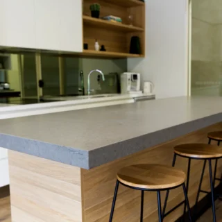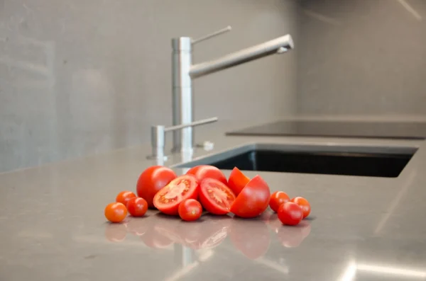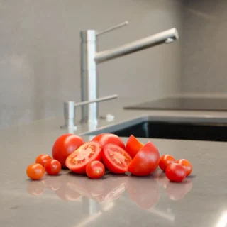 Technistone® materials consist of high-quality natural materials (quartz and granite), glass and mirror pieces and a small amount of colour pigments. All components are mixed, joined using a high-quality polyester resin and processed into highly durable worktops. Thanks to carefully selected raw materials and an innovative production technology developed by Brenton, Technistone® products achieve excellent properties, especially high durability and density. Customers particularly appreciate the easy maintenance of the worktops. They have a non-porous surface and are thus highly resistant to bacteria and scratches. An extensive range of colours and patterns offers a flexible number of options for combining this engineered stone with other interior design elements.